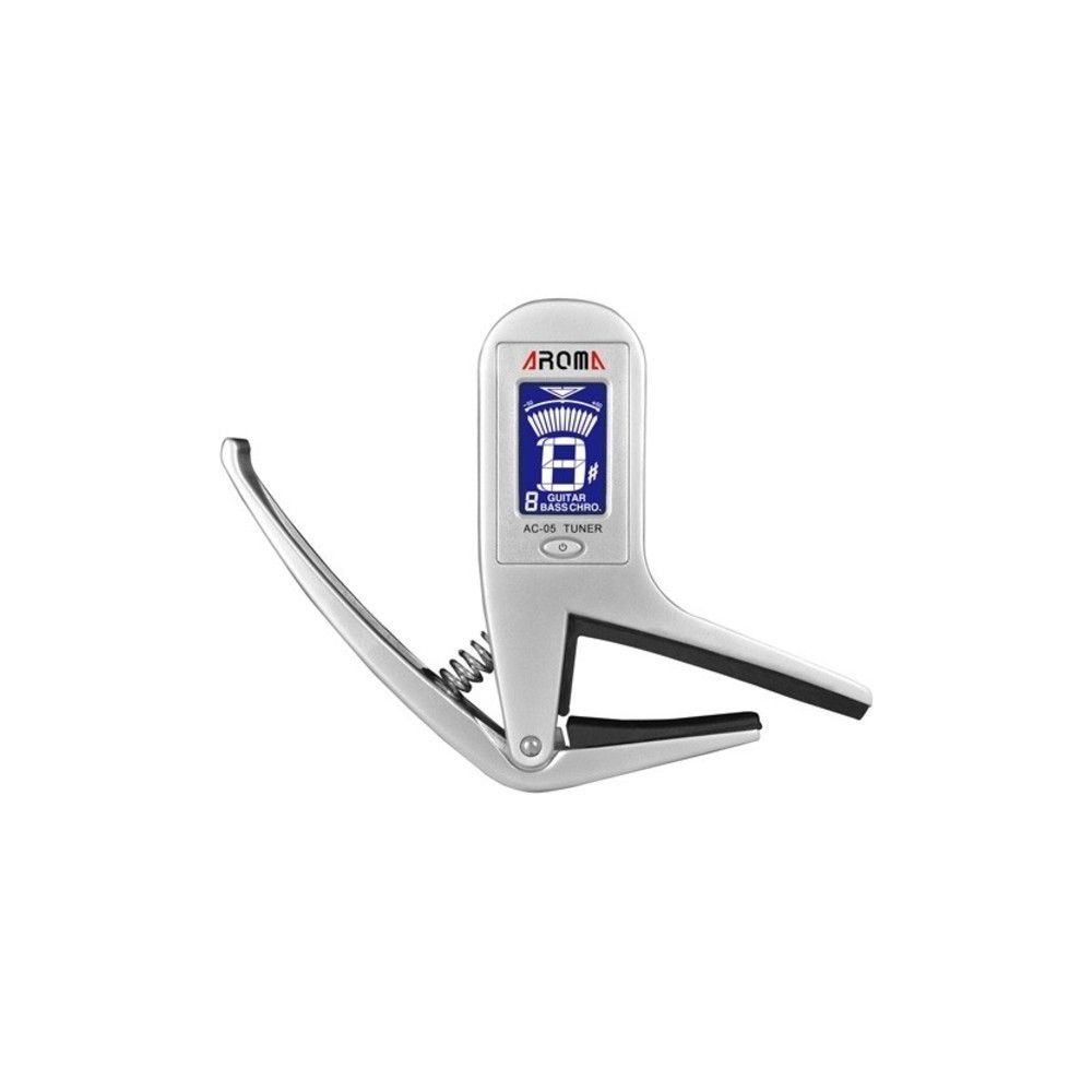 Металический каподастр + тюнер для гитары, баса. Двухцветный дисплей, точность распознования +/- 0,5 цента.