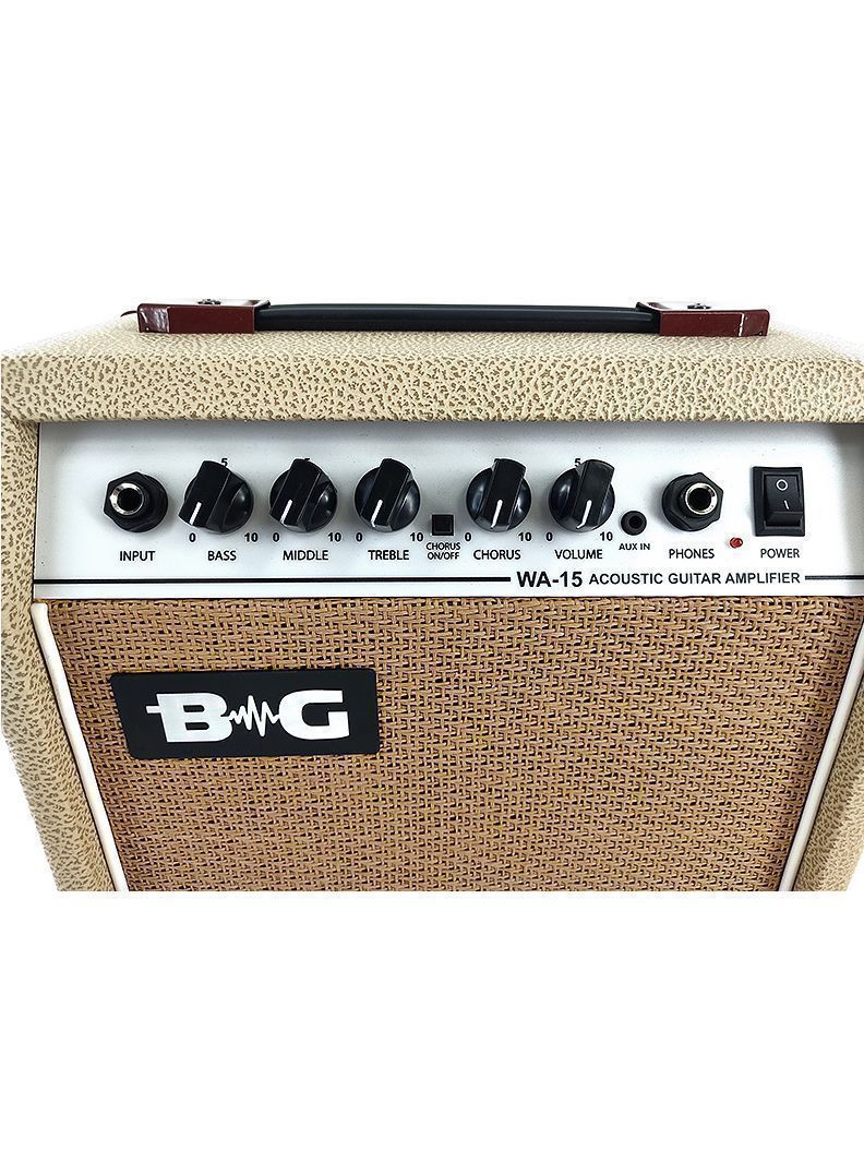 BG WA15 Усилитель гитарный комбо акустический, 15 Вт, 6,5", Input, Bass, Middle, Treble, Chorus S\W, Chorus, Volume, Mp3 IN, Phones