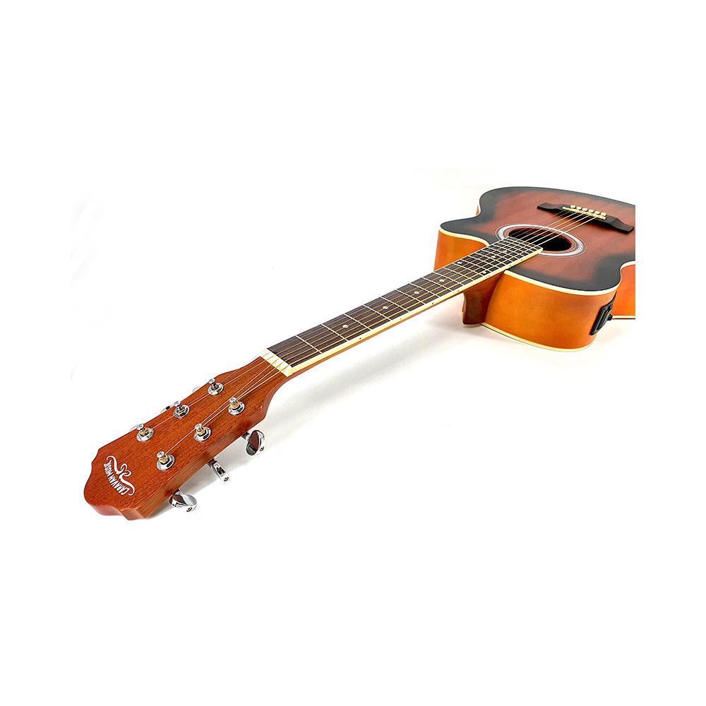 HS-4040CE MAS – качественная и доступная по цене электроакустическая гитара с вырезом. Верхняя дека инструмента изготовлена из сапеле, древесной породы по свойствам схожим с красным деревом, благодаря чему звук приобретает глубину и мягкость. Нижняя дека из липы отвечает за яркость основного тона и средних частот. Гриф из махагони снабжен прочной палисандровой накладкой. Элегантный внешний вид дополняет красивая расцветка верхней деки. Натуральное лаковое покрытие корпуса обеспечивает привлекательный внешний вид и положительно влияет на звуковые характеристики гитары. Caravan – это недорогие акустические и электроакустические гитары с качественным звучанием. За все время существования бренд Caravan заработал себе безупречную репутацию и прочно укрепился в нише акустических гитар. Caravan HS-4040CE MAS – хороший выбор для обучения музыке и домашнего музицирования.