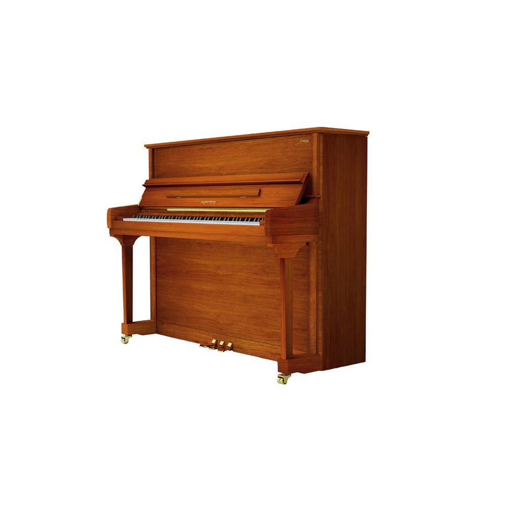 Kayserburg KA1X/A124 представляет собой вертикальное пианино, которое сочетает в себе великолепный внешний вид и первоклассное качество. Модель обладает глубоким звучанием и богатым тембром. Пианино выполнено из прочных компонентов, которые изготавливаются на немецком оборудовании. Каждая деталь тщательно исследуется мастерами Kayserburg. Штег выполнен из цельного клена, материал черных клавиш – эбеновое дерево. Вирбельбанк сделан из клена, слои расположены перекрестно. Пианино выполнено в ореховом цвете, который придает инструменту невероятную эффектность и привлекательность. Модель поставляется в комплекте с банкеткой. Kayserburg KA1X/A124 станет прекрасным вариантом для самых требовательных исполнителей.