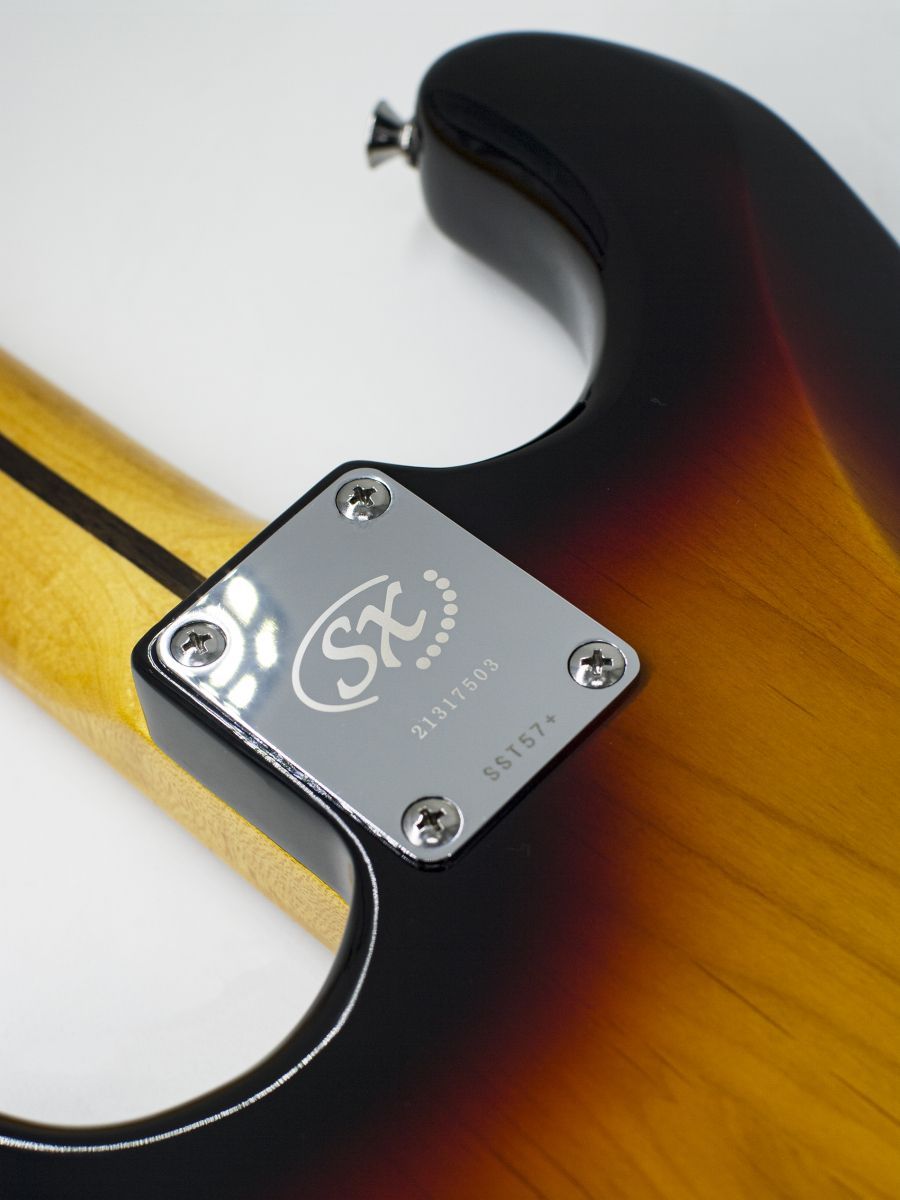 SX SST57+/HSH/3TS Электрогитара, стратокастер, корпус: липа, гриф: отборный канадский клён, накладка: отборный канадский клён, 21 лад, колки: хром, звукосниматели: H-S-H, контроллеры: 1 громкость, 2 тона, 5-позиционный переключатель, машинка: Vintage, цвет: 3 Tone Sunburst