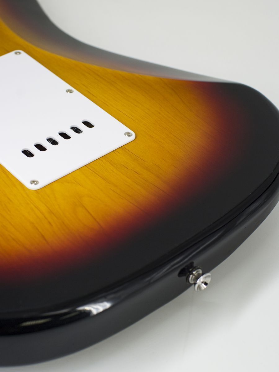Конструкция: stratocaster Мензура: 648 мм Ширина верхнего порожка: 42 мм Материал корпуса: липа Гриф / накладка грифа: отборный канадский клён / отборный канадский клён Лады: 21 Колки: хром Звукосниматели: H-S-H Регуляторы: 2 тона, 1 громкость, 5-позиционный переключатель Машинка: Vintage Цвет корпуса: 3 Tone Sunburst Страна-производитель: Китай